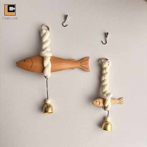 קישוט דג עץ חדש קישוט חבל כותנה נמוך לסרן פעמוני עץ גילוף הדמיה דגים עץ תליית מתנות דקורטיביות